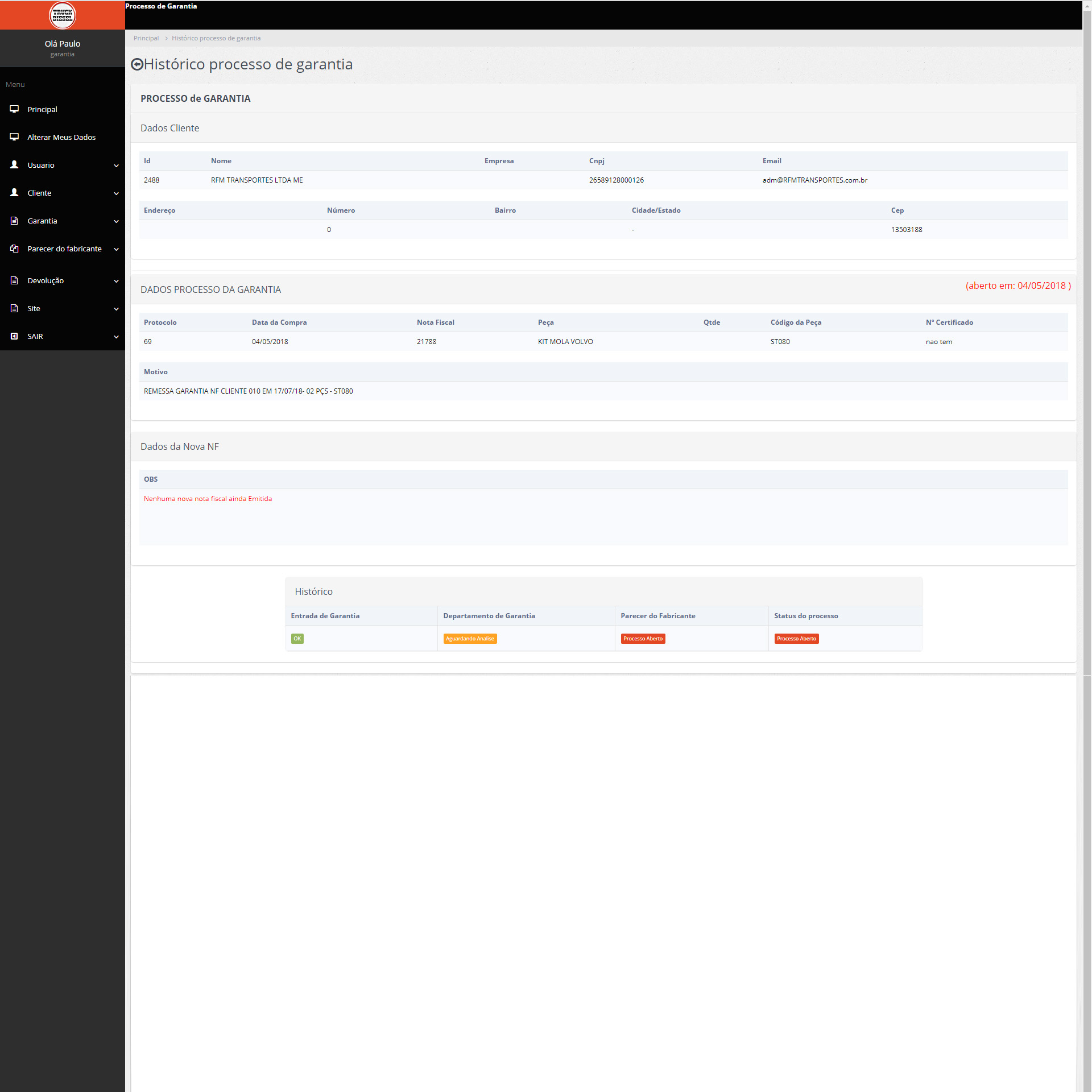 Sistema de garantia